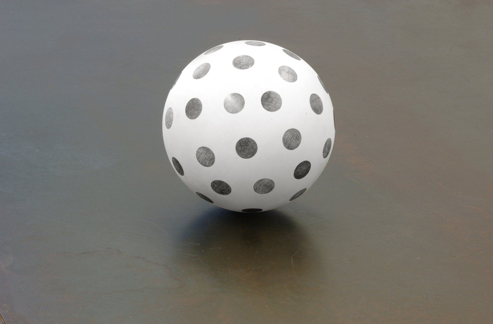 The "balls" are hollow plaster molds that are marked with a pencil. The complicated geometry of a spherical surface therefore gives rise to complex orders and circular patterns. The line drawn on the surface of the sphere, on the other hand, is endless: while drawing, one encounters one's own trace again and again, the gesture of drawing is reminiscent of winding a ball.