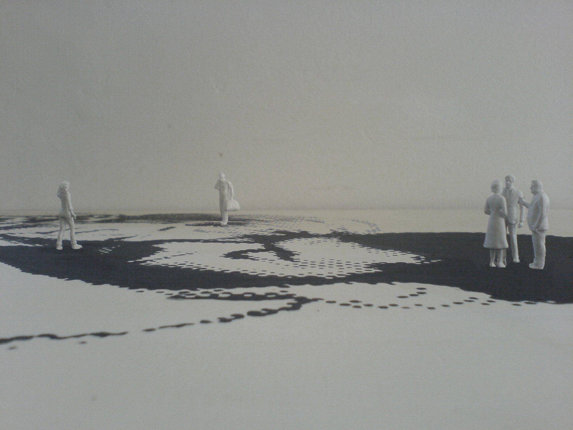 Surrounded by buildings, a picture lies like a carpet in the middle of the surface. When walking across the square, the viewer sees an alternating play of points, spots, islands and continents, which convey a relation to the width of the square to the pedestrian. The illustration shows a motif from the film "Fear Eats the Soul", one of Fassbinder's most famous films. The motif shows a couple that are opposed to each other on several levels: in skin color, age, gender, culture. The choice of the motif for this square represents the desire to overcome these contradictions in the coexistence of the people in the quarter. The motif also corresponds to the cliché of a movie poster. You can see that this image is constructed and can be clearly assigned to the world of film. This corresponds to Fassbinder's view of the relationship between art and life: “The film is like a rectangle of life. There are limits here and there. But I think the film is more honest because it admits that it is limited space. ”Quote: Rainer Werner Fassbinder