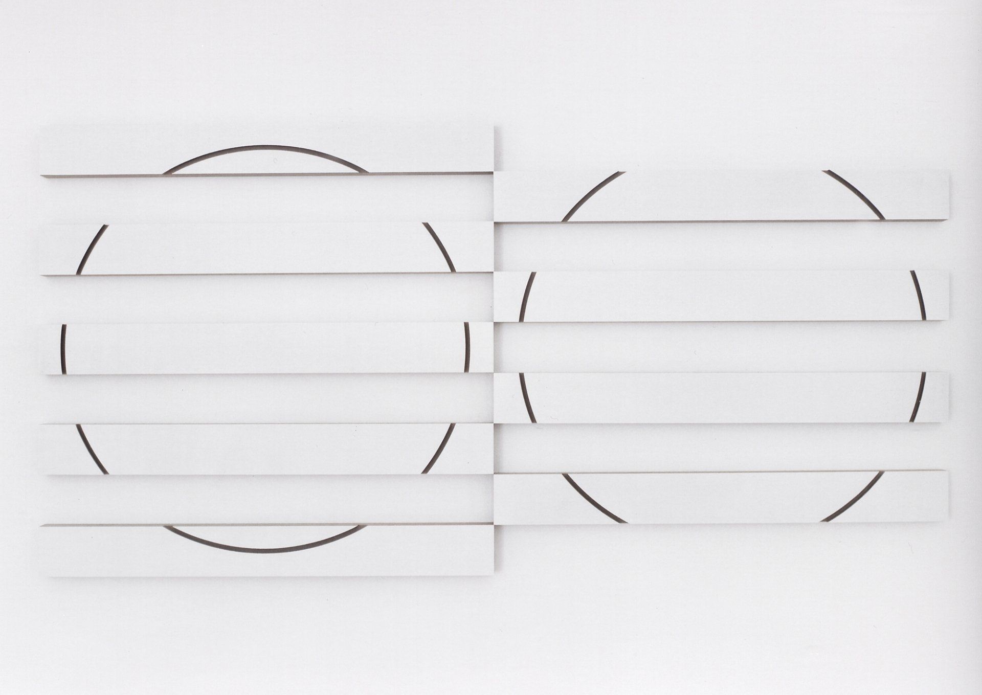 Through processes such as cutting, dividing, lining up and reassembling, I open up the closedness of the circular and spherical shape. By intervening in the geometry, the behavior and the relationship of the sphere to space change instantly.