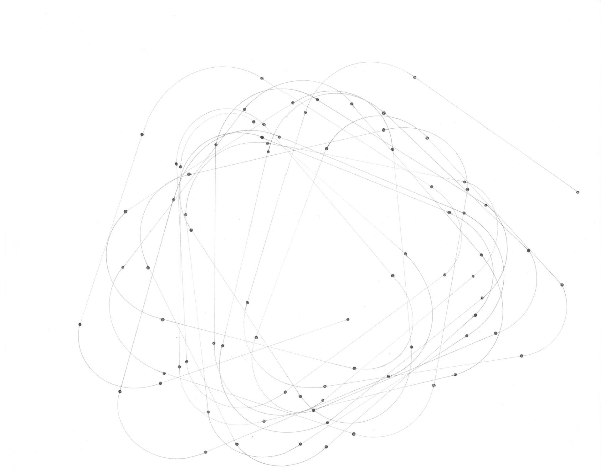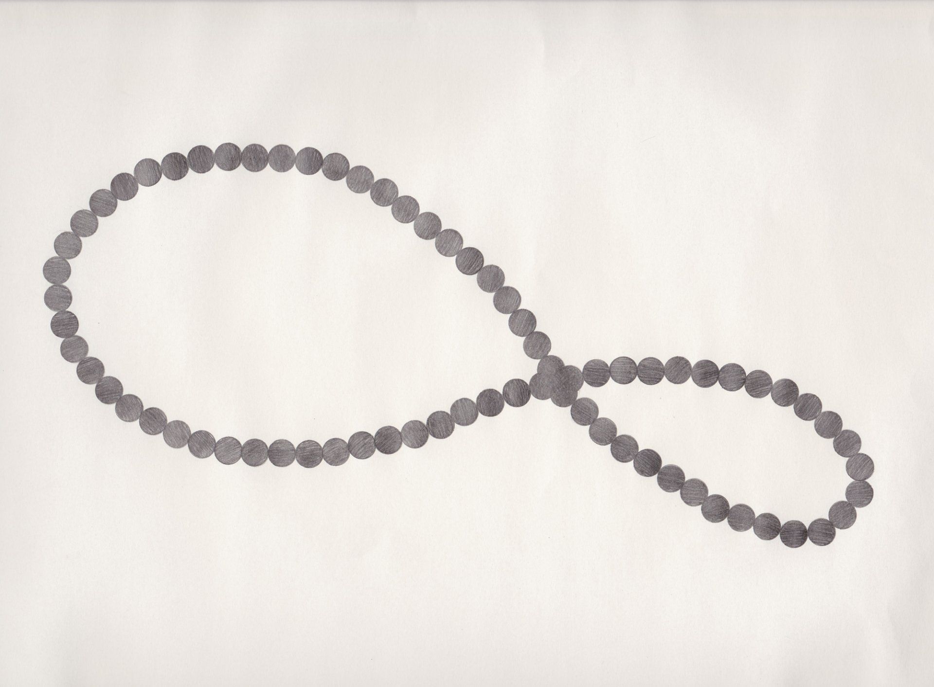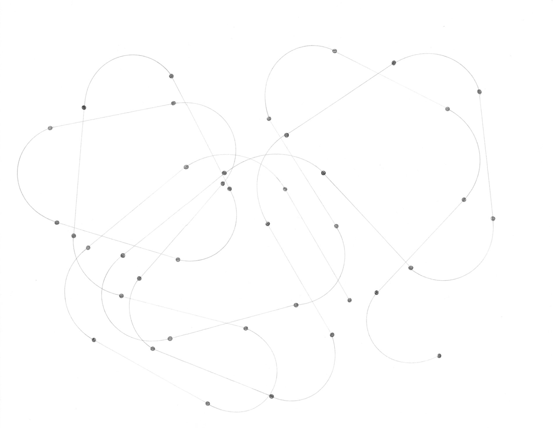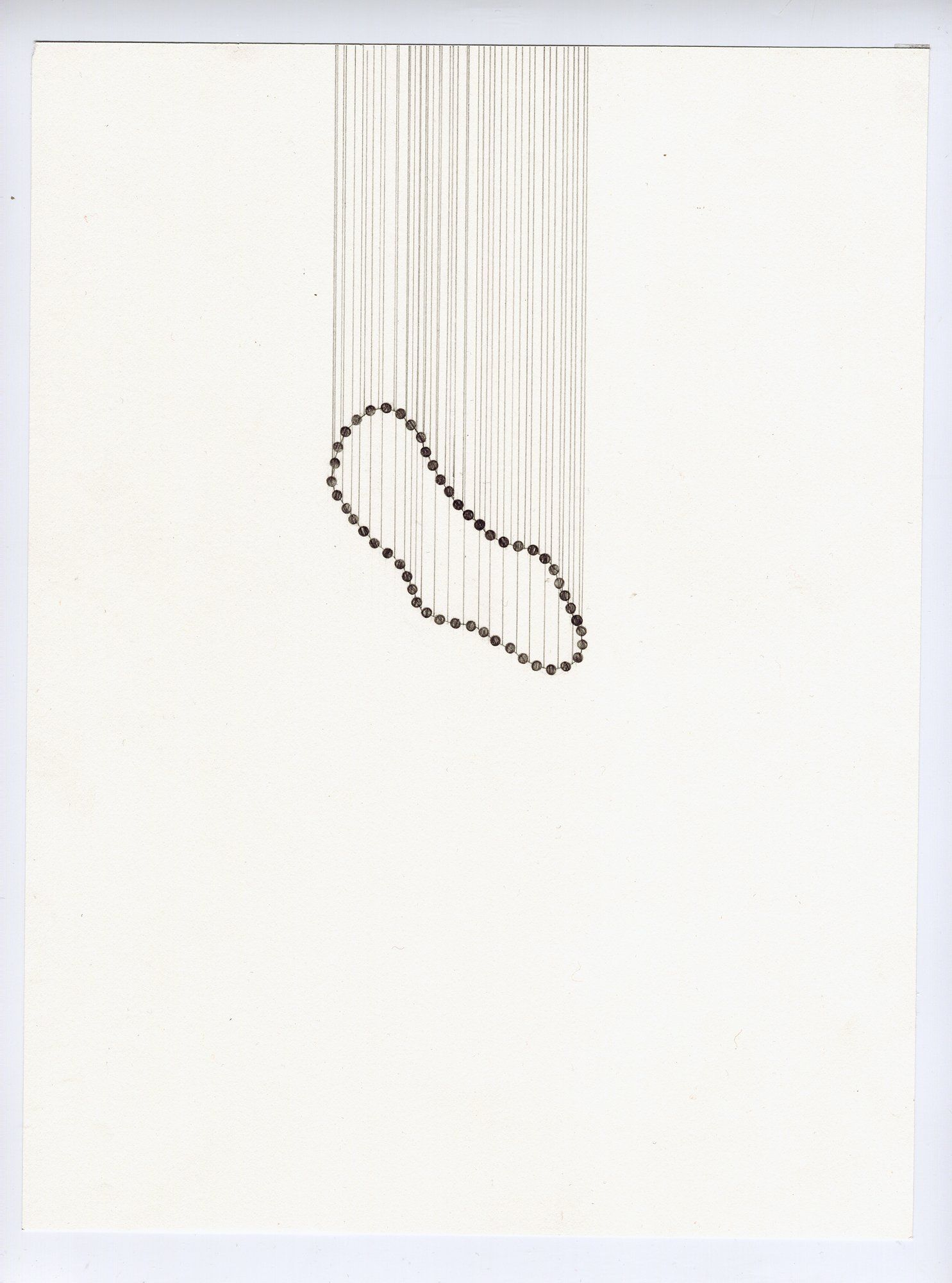 Die Zeichnungen entstehen oft in Serien und unabhängig von der Skulptur. Die Beziehung zwischen Plastik und Zeichnung ensteht erst während des Arbeitens durch gedankliche Querverbindungen zwischen den Medien: eine Linie in der Zeichnung kann zum Faden im Raum werden und umgekehrt. Manche Motive aber können nur zwei- oder dreidimensional umgesetzt werden. In jedem Fall bedeutet dieses Arbeiten aber mehr als nur ein Perspektivwechsel zwischen Plastik und Zeichnung: der Medienwechsel setzt nicht nur einen Entwicklungsprozess in Gang, sondern hält ihn auch am Laufen.