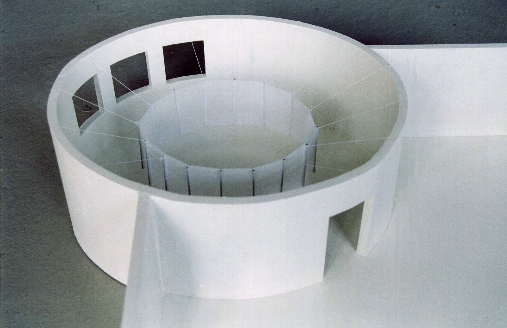 In den Kreuzungspunkt zweier Flure des Galerieraumes wird ein Raum aus Papier eingesetzt. Dieser Raum im Raum hat die Form eines dreidimensionalen Kreuzes, das Motiv der Vierung. Eine Vierung ist ein „virtueller“ Raum, der nur in unserer Vorstellung durch die Durchdringung zweier Raumvolumina entsteht. Die zerlegbare Holzkonstruktion wurde vorher mit Papier bespannt und an Ort und Stelle zusammengesetzt.