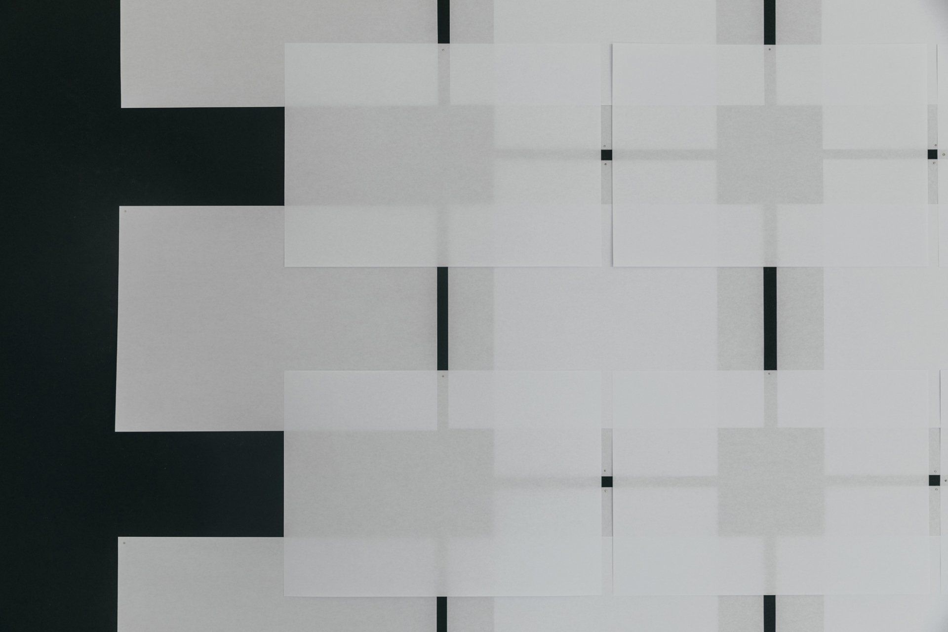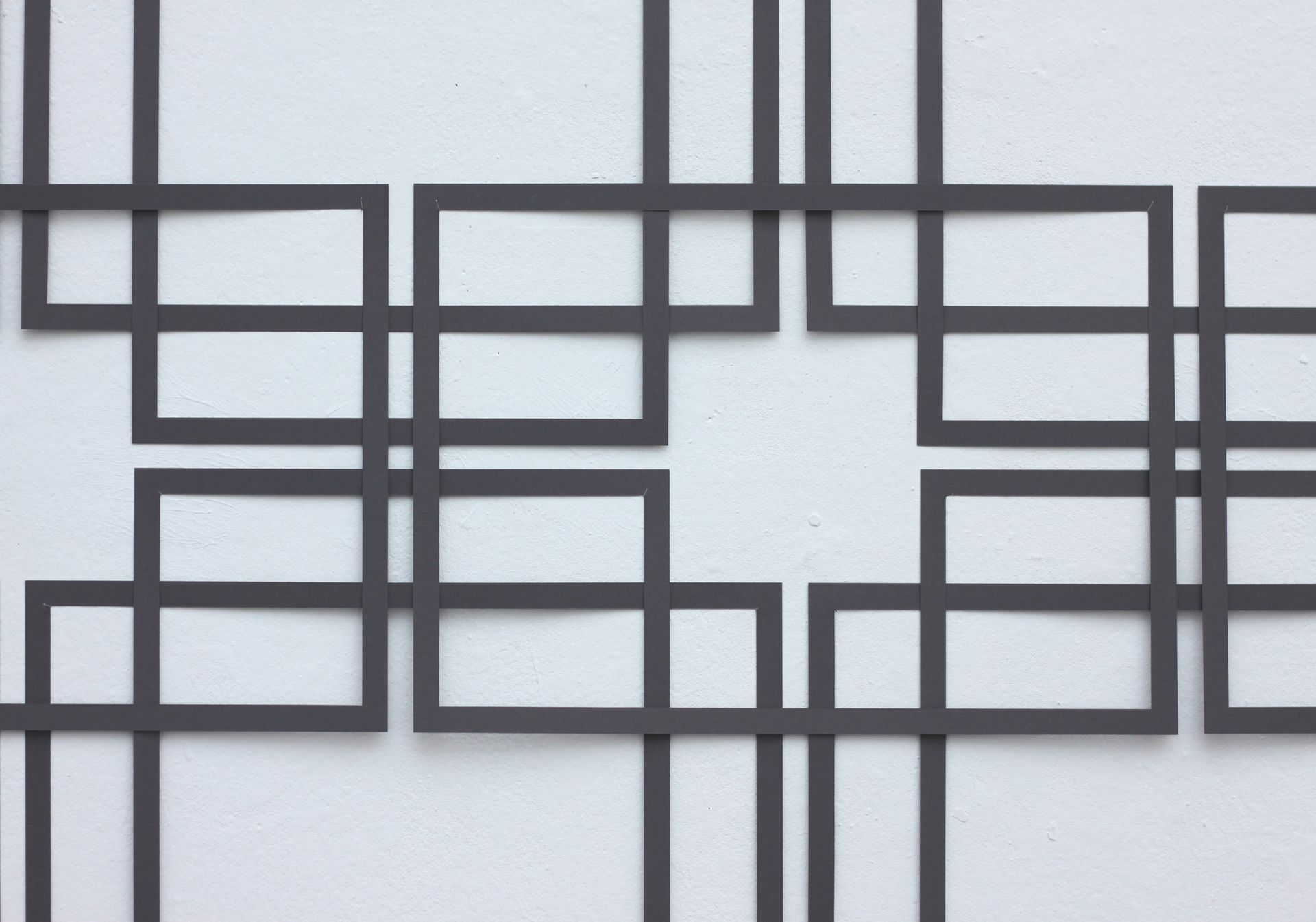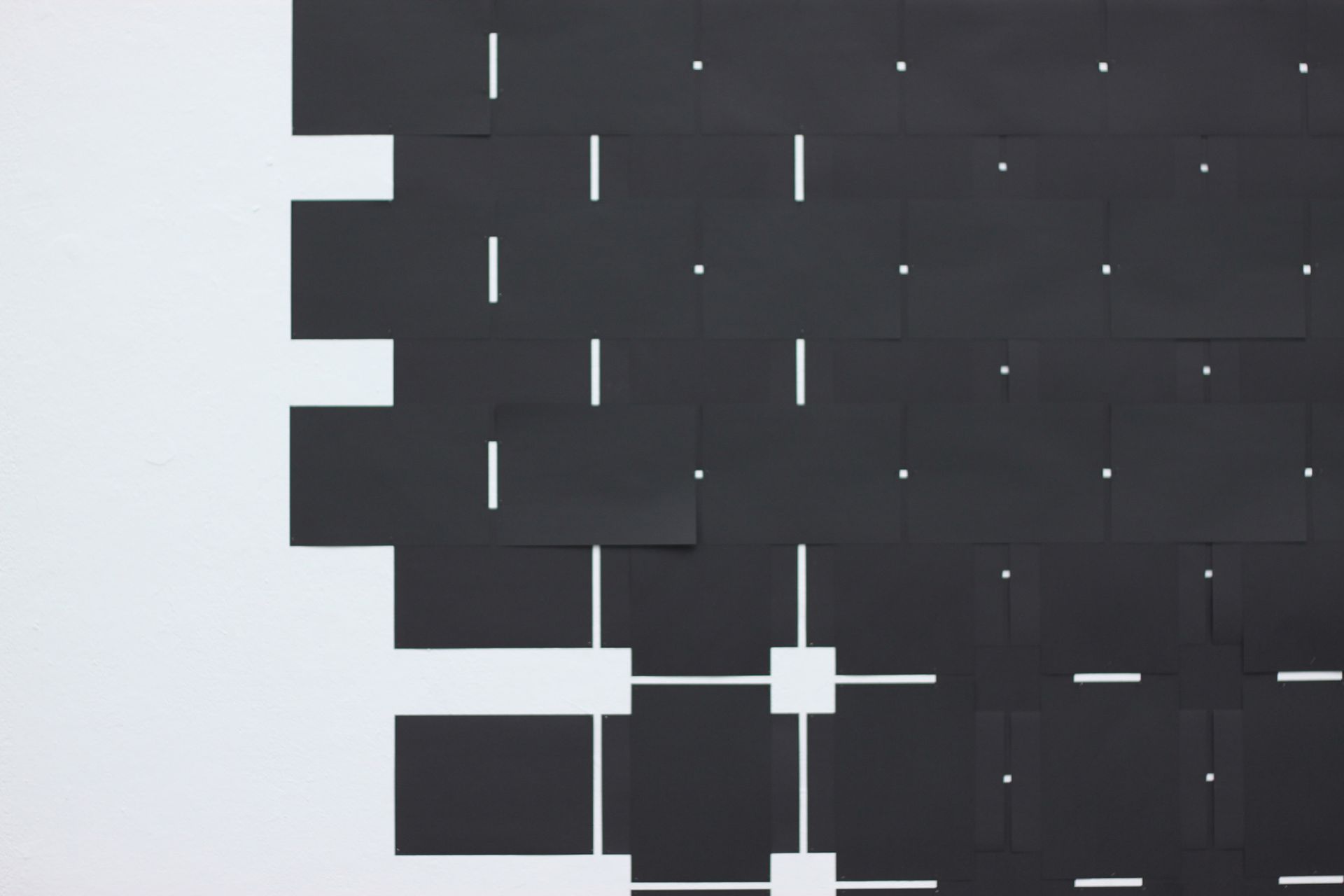 Die Arbeiten der Serie paperwork entstanden mit dem Wunsch, kurzfristig in Räumen zu intervenieren. Das Blatt Papier im DIN A 4 Format wird zum Modul und zur Maßeinheit. Auch die Arbeiten der Serie schwarz auf weiß beruhen auf Din Formaten, die duch Teilung und Neukomposition dem Raum angepasst werden.