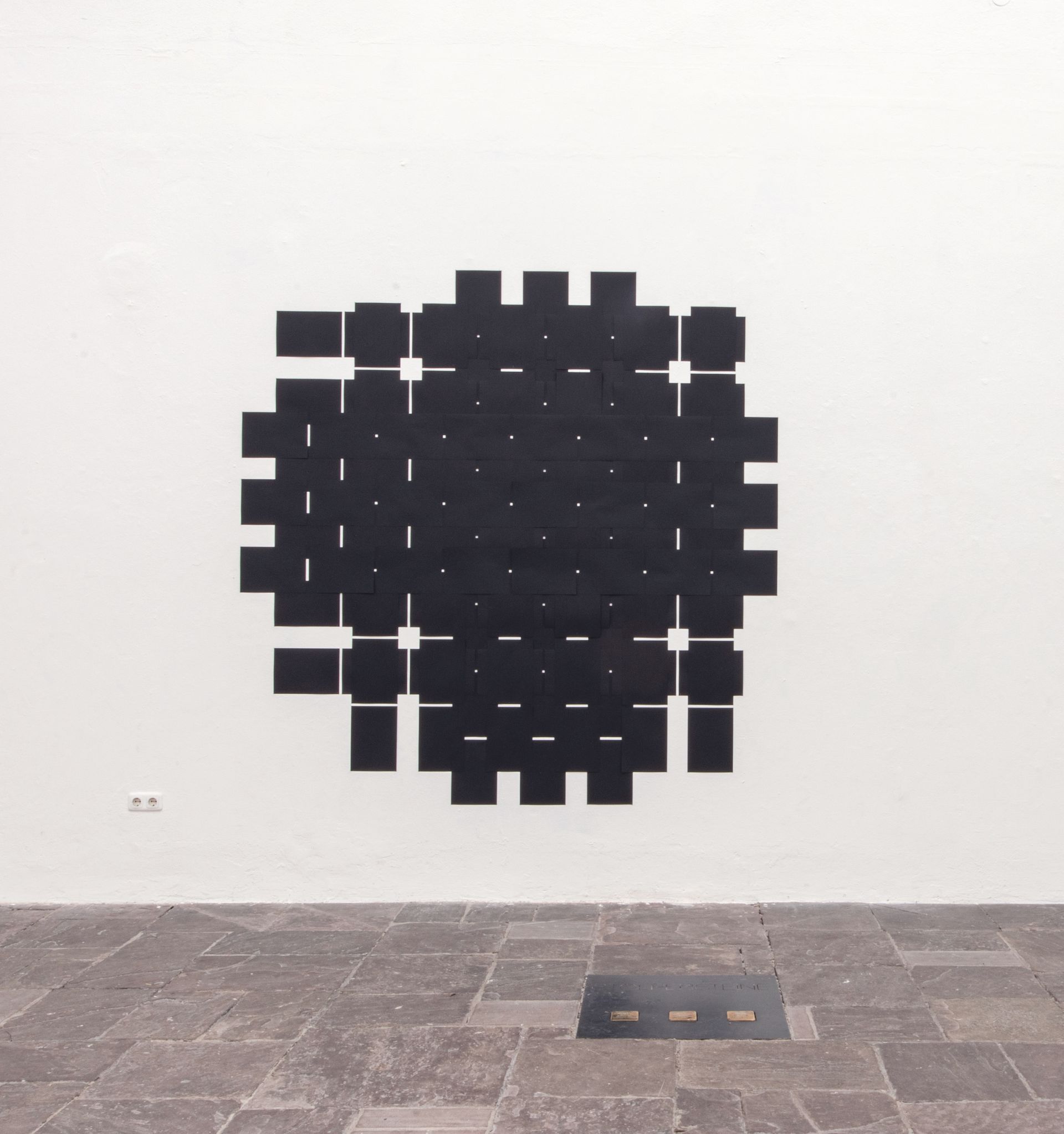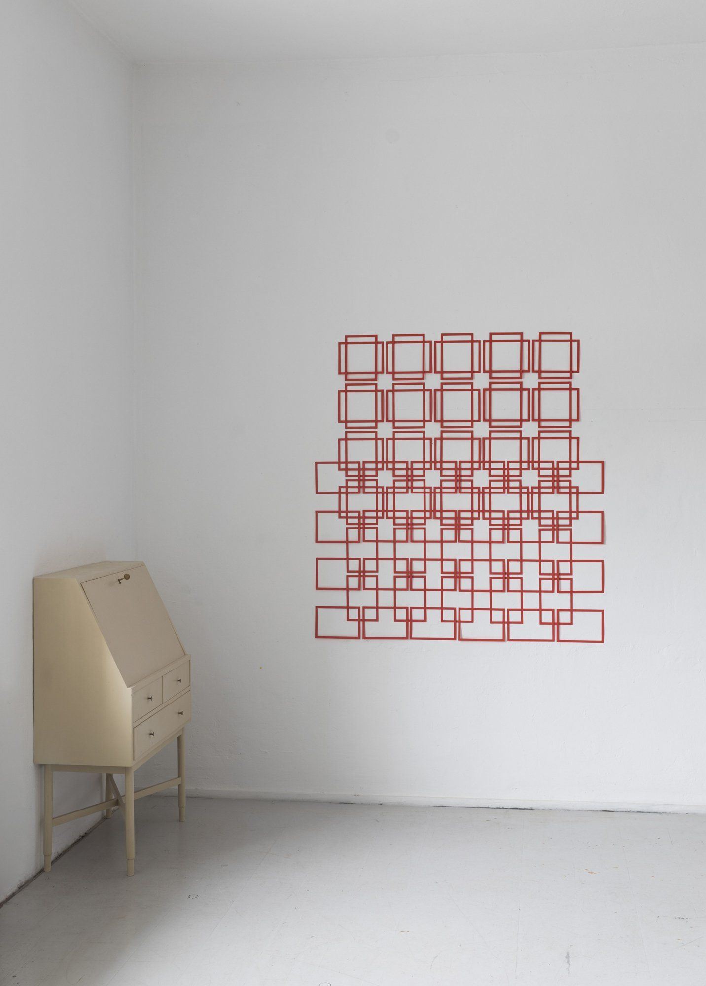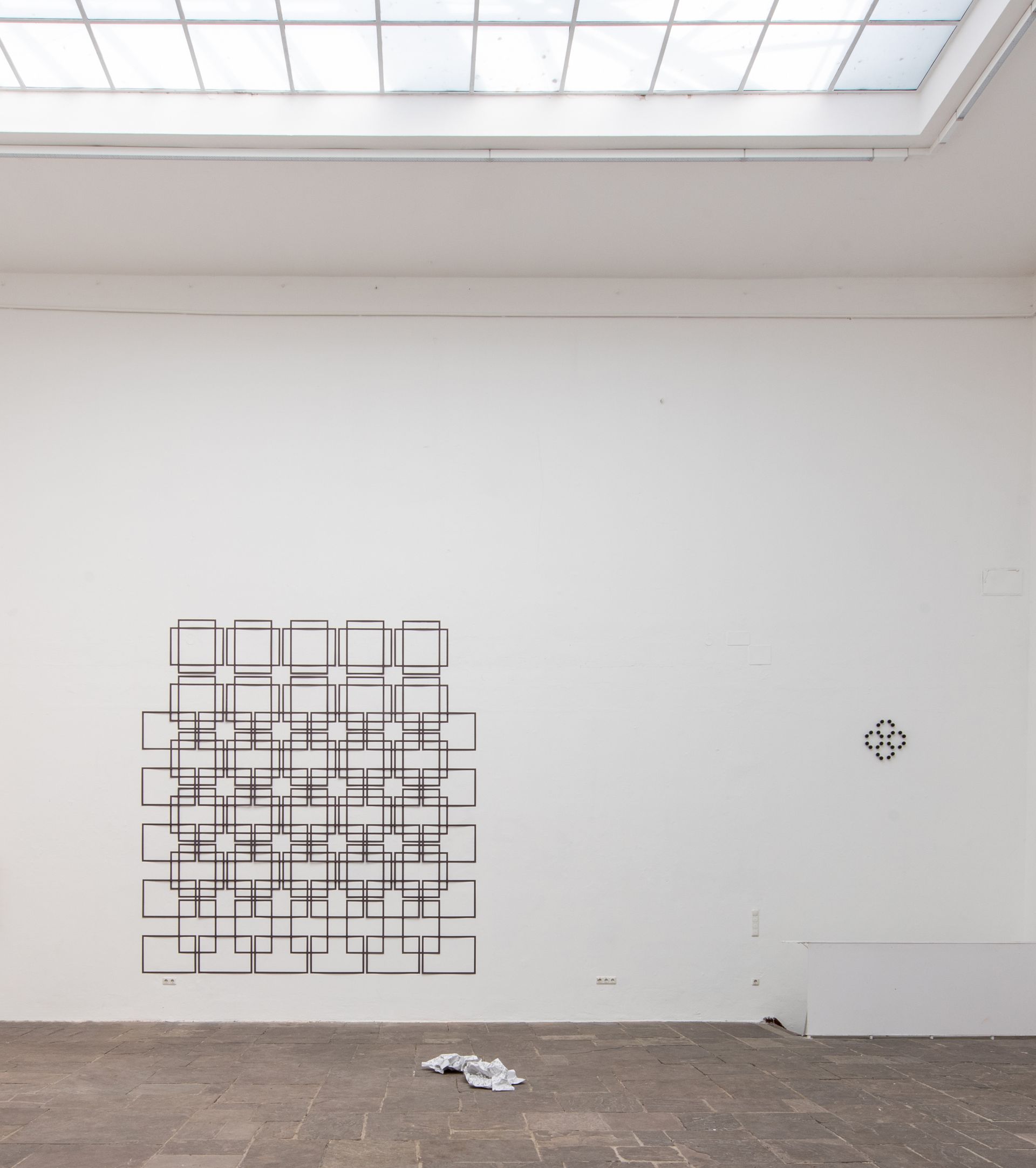 Die Arbeiten der Serie paperwork entstanden mit dem Wunsch, kurzfristig in Räumen zu intervenieren. Das Blatt Papier im DIN A 4 Format wird zum Modul und zur Maßeinheit. Auch die Arbeiten der Serie schwarz auf weiß beruhen auf Din Formaten, die duch Teilung und Neukomposition dem Raum angepasst werden.