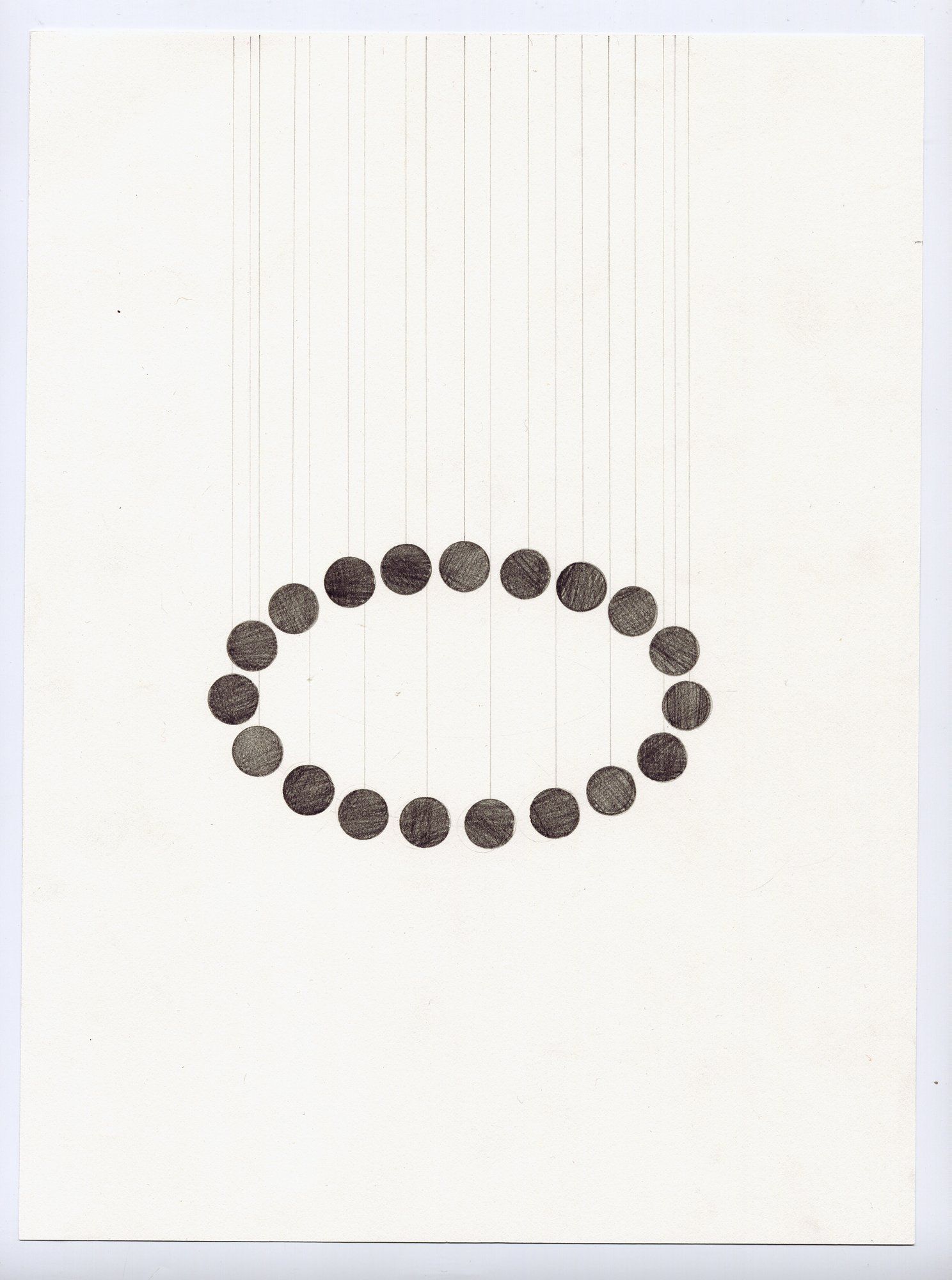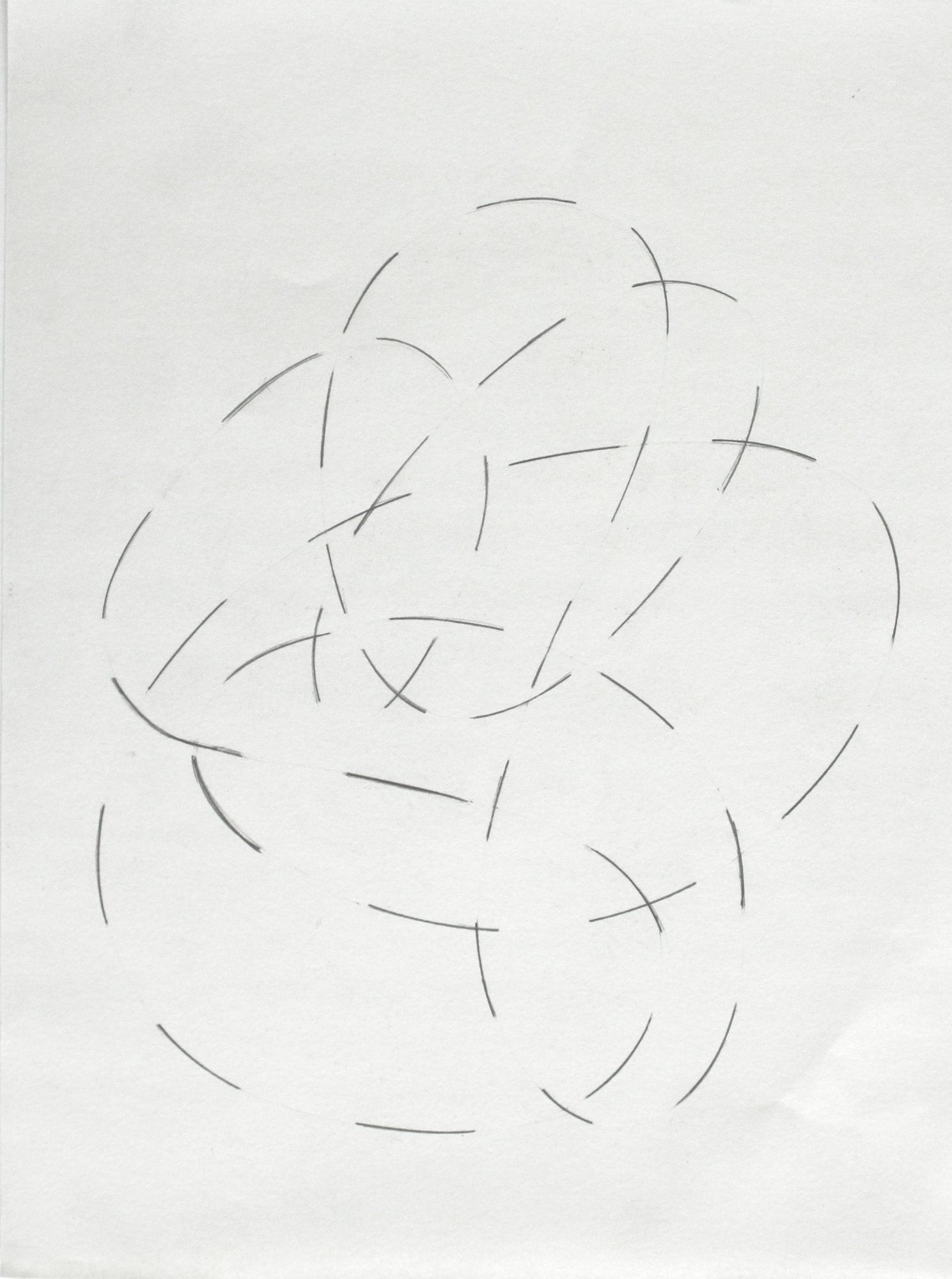 Die Zeichnungen entstehen oft in Serien und unabhängig von der Skulptur. Die Beziehung zwischen Plastik und Zeichnung ensteht erst während des Arbeitens durch gedankliche Querverbindungen zwischen den Medien: eine Linie in der Zeichnung kann zum Faden im Raum werden und umgekehrt. Manche Motive aber können nur zwei- oder dreidimensional umgesetzt werden. In jedem Fall bedeutet dieses Arbeiten aber mehr als nur ein Perspektivwechsel zwischen Plastik und Zeichnung: der Medienwechsel setzt nicht nur einen Entwicklungsprozess in Gang, sondern hält ihn auch am Laufen.